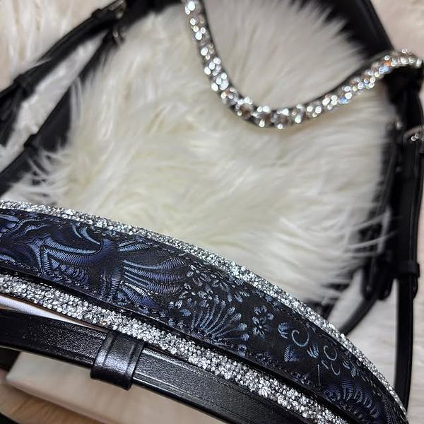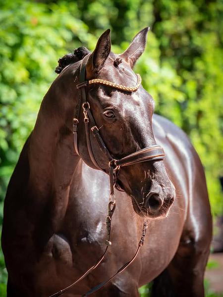 • Cross under Bridle ( damit reitet Cathryn Rippelbeck) Wirkung verteilt sich gleichmäßig auf Genick, Nase und Kieferäste. Stellung und Biegung möglich, zieht sich nicht zusammen wie herkömmliche gebisslose Trensen