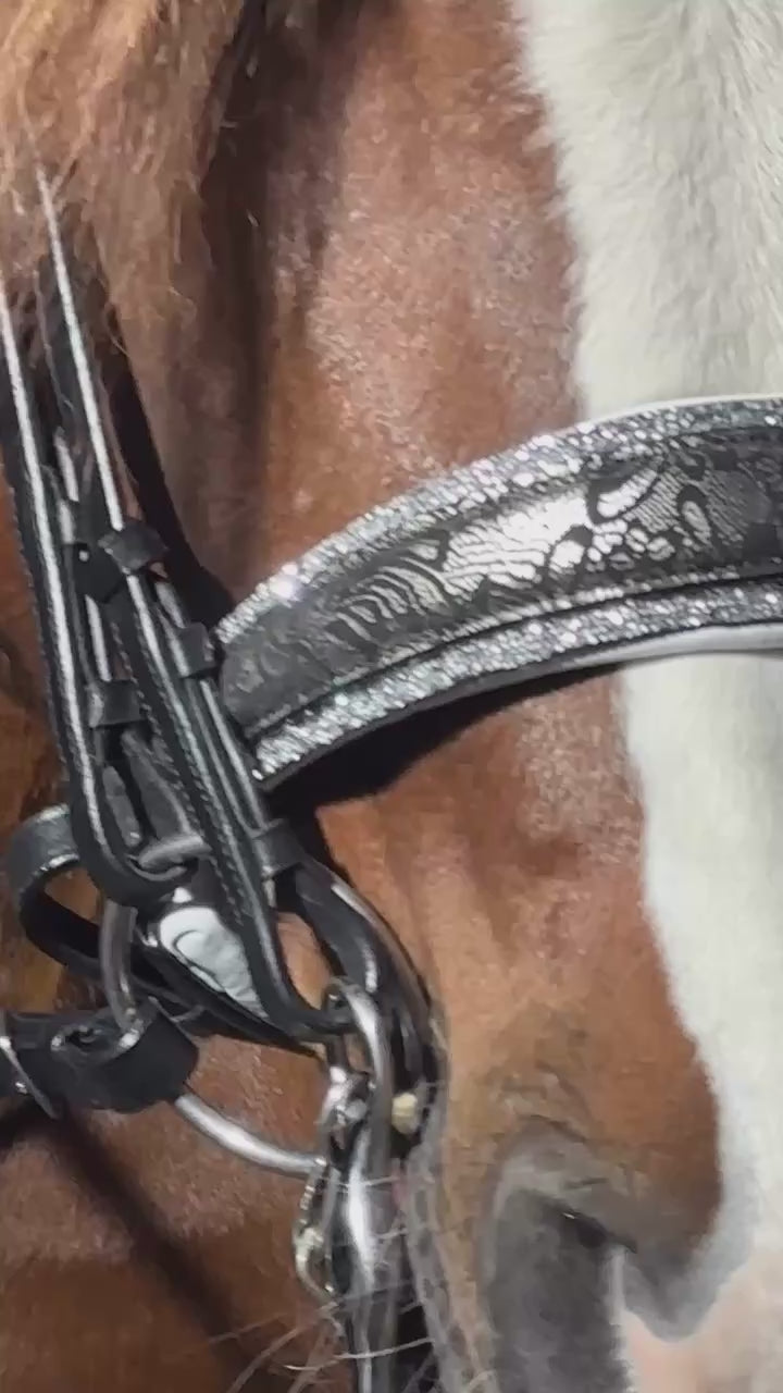 Die Kandare "Silver Lace" kombiniert ein edles Lace-Design mit der atemberaubenden Anmut von Silberner Spitze. Diese Kandare ist nicht nur funktional, sondern auch ein echter Blickfang. Viele Reiter wählen sie, weil sie die Kombination aus Stil und Komfort schätzen. Die Silberne Spitze hebt Ihr Pferd bei jedem Auftritt hervor, und die 4 Reihen Crystal Rocks verleihen einen zusätzlichen Glanz. Ihre Eleganz kommt jedoch nicht nur durch das Aussehen, sondern auch durch die sorgfältige Verarbeitung der Materialien zustande.