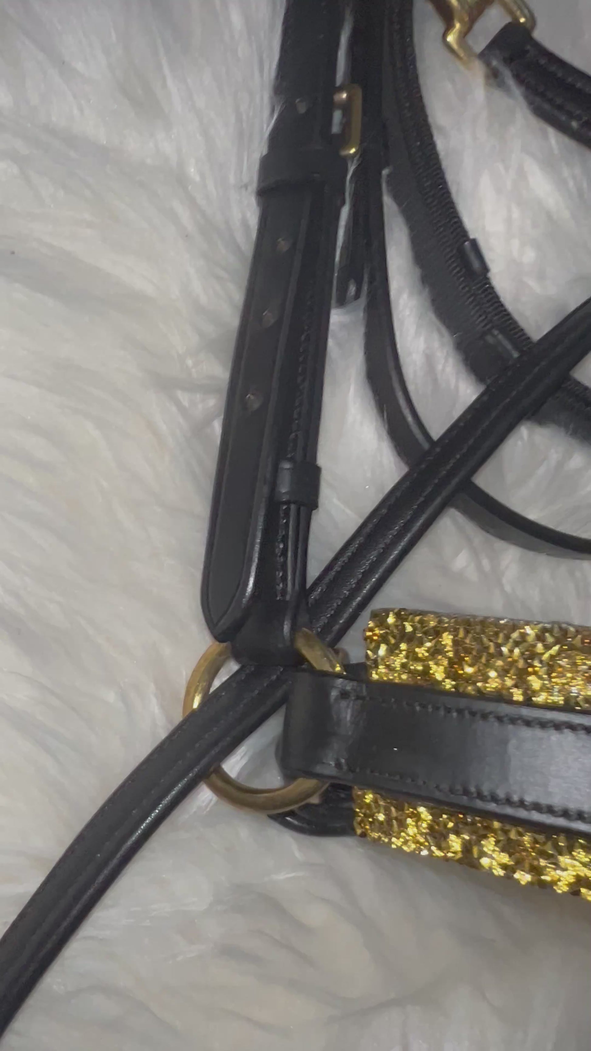 Brida sin bocado marrón, brida Gold Edition, brida anatómica sin bocado, brida patentada dorada, brida Crystal, equitación justa, brida apta para caballos, pedido anticipado de bridas, equipamiento elegante para montar, equitación sin bocado con estilo