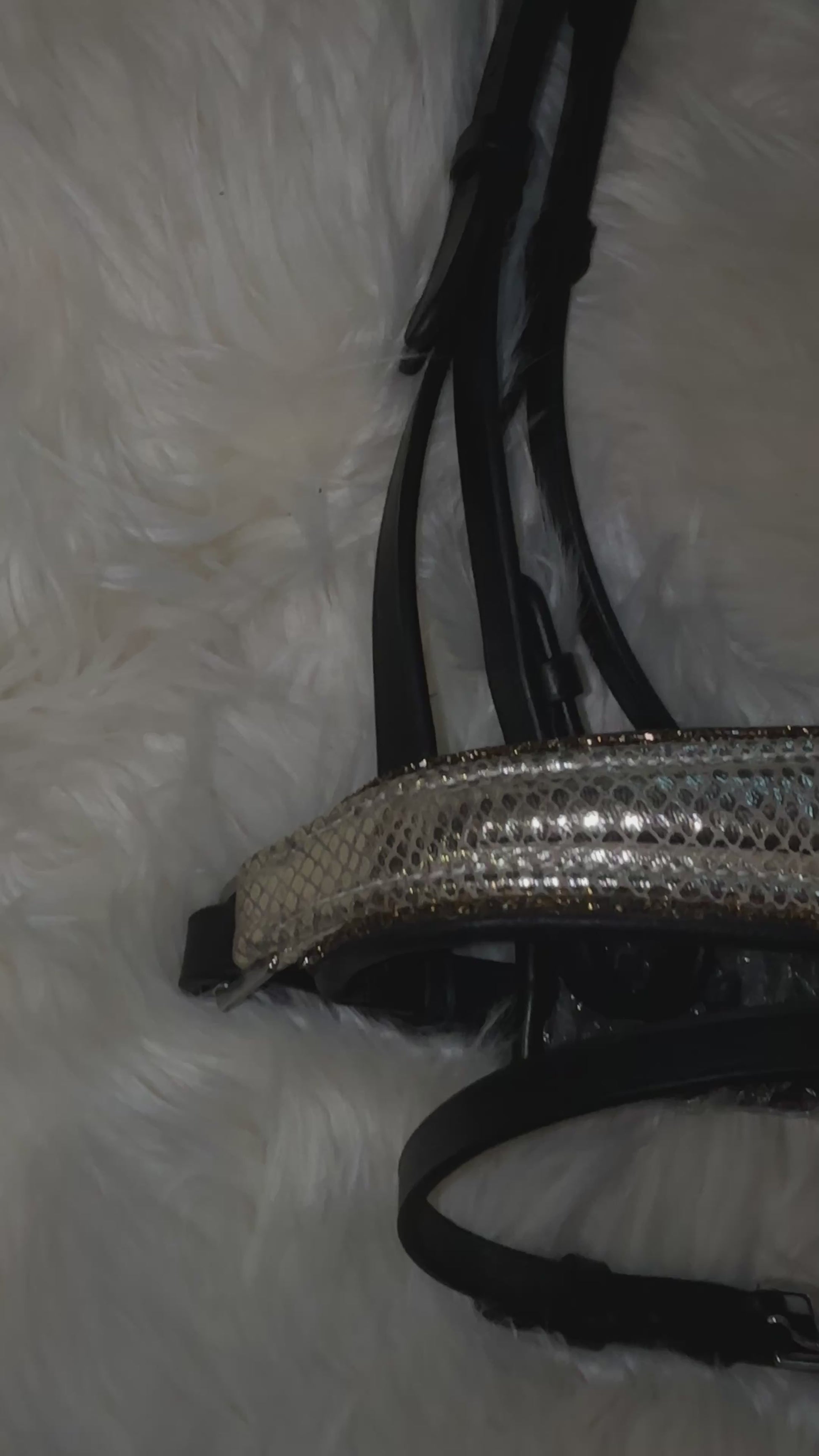 Besondere Trense in Gold Kroko mit Crystal Dust Gold.