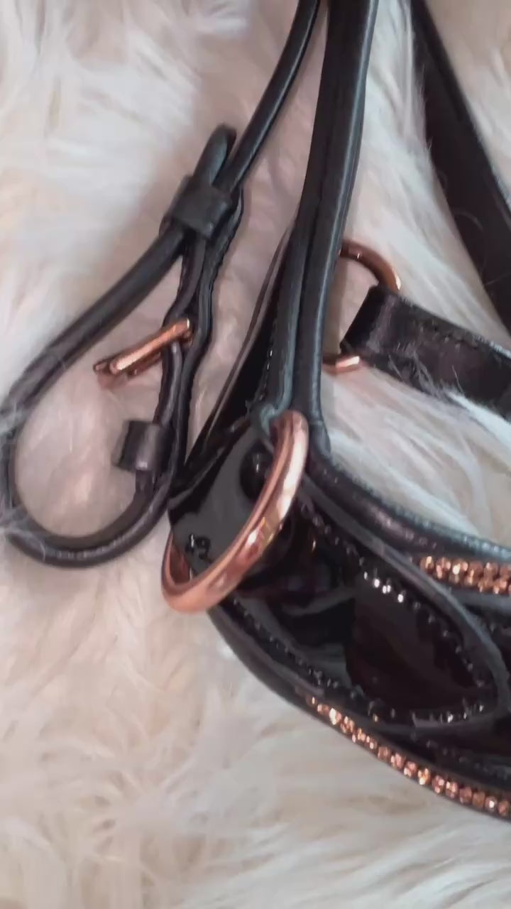 El Midnight Supreme es popular y ahora hay un nuevo modelo. Esta exclusiva cabezada anatómica combina un brillante charol con herrajes de oro rosa finamente afinados, uniendo así elegancia, función y los más altos estándares de confort y diseño.