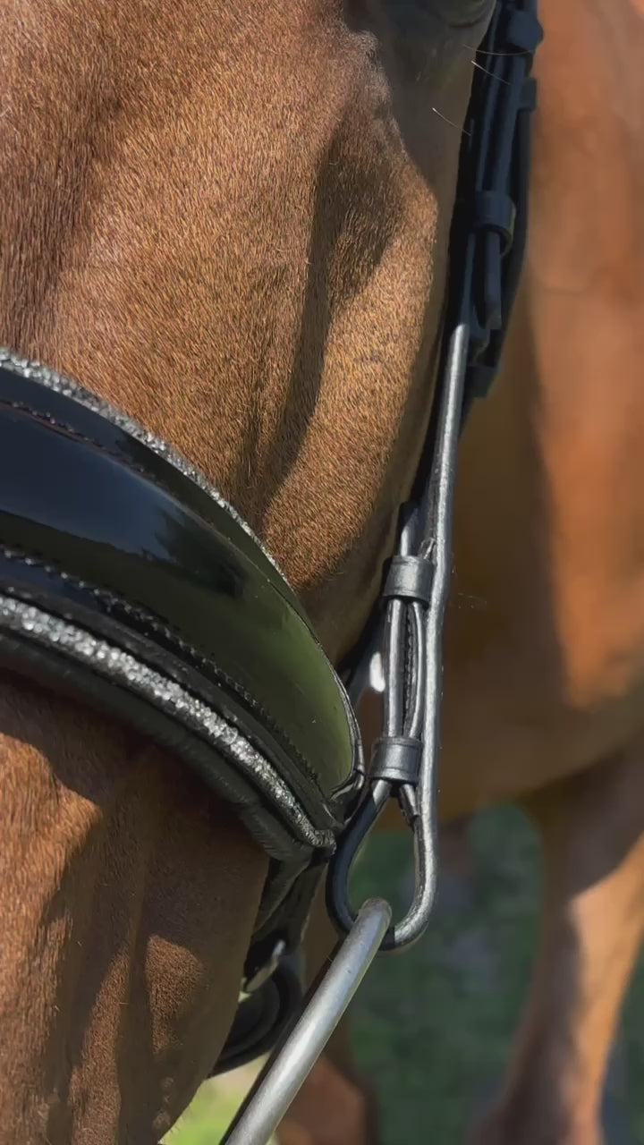 Glamourös Lack Trense schwarz mit Silber Crystal Rocks
