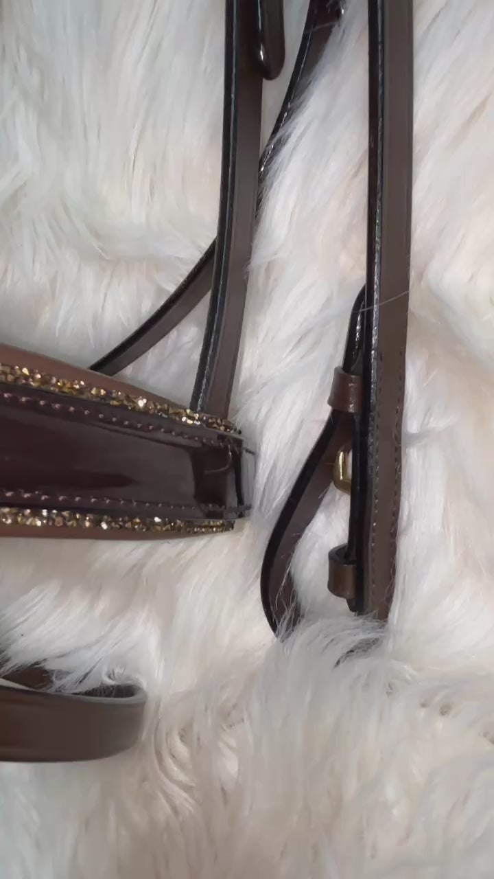 Golden Hazel – Cabezada exclusiva en color marrón con cristales Crystal Rocks Gold y cristales de 12 mm “Golden Shine”