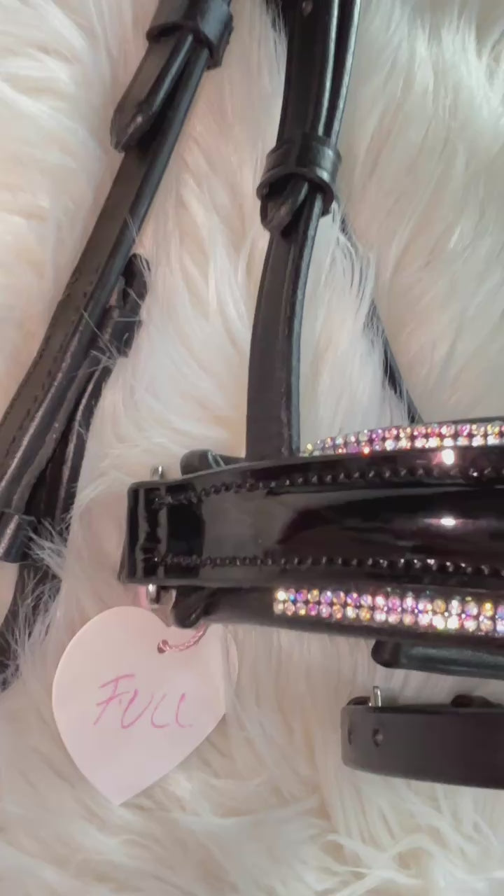 Trense mit Kristallen, Glitzertrense, Rainbow Trense, Rivoli Trense, Crystal AB Trense, Luxustrense, Lacktrense, Pferdetrense mit Strass, anatomische Trense, elegante Trense Vollblut