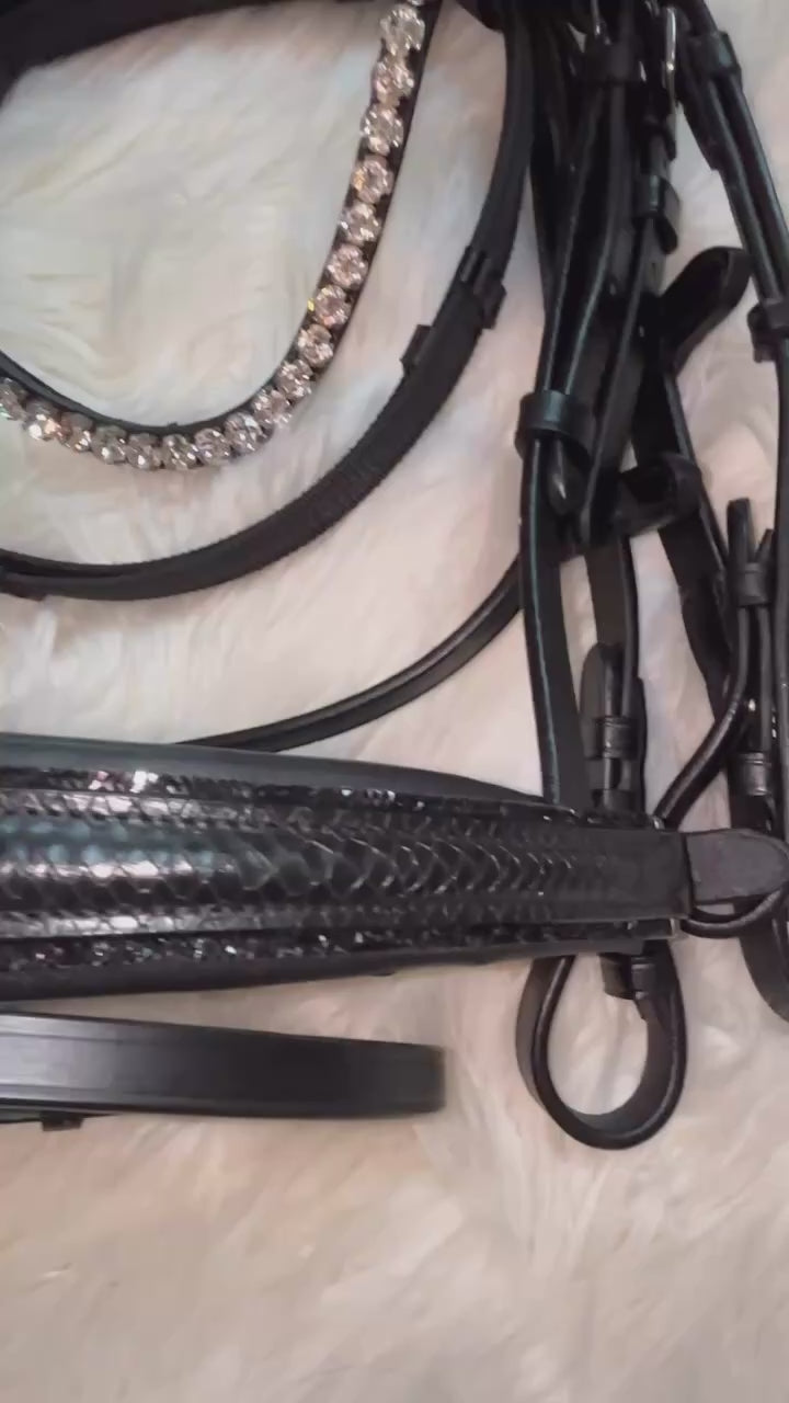 Mit ihrer eleganten Optik und dem durchdachten Design ist die Black Star Ponytrense nicht nur funktional, sondern auch ein echter Hingucker. Das kombinierte Leder und die dekorativen Nähte verleihen ihr ein stilvolles Aussehen, das auf jedem Reitplatz bemerkenswerte Aufmerksamkeit erregt. Die Trense funktioniert einwandfrei, sodass Ihr Pony sowohl bequem als auch modisch aussieht.