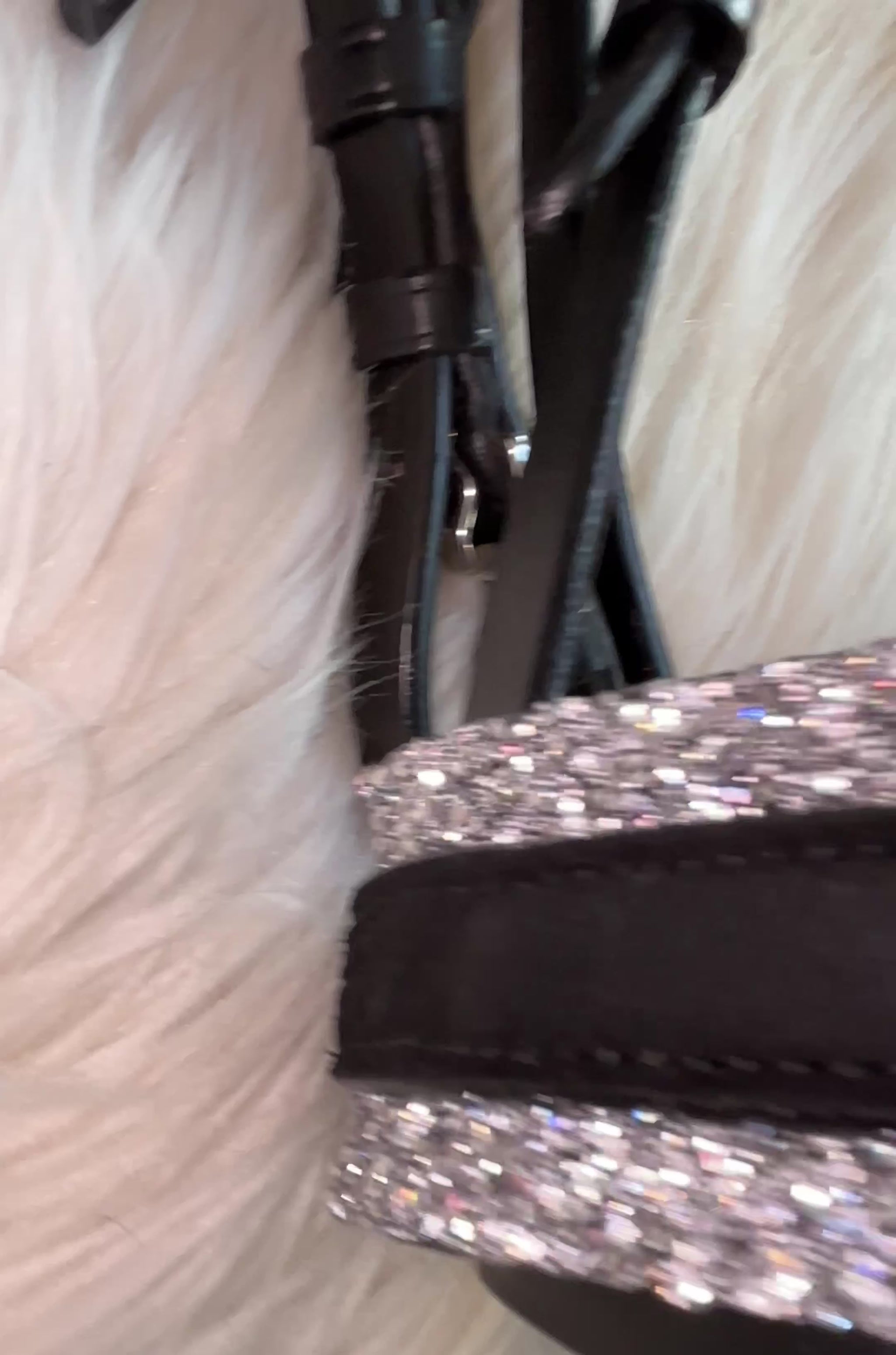 Der Nasenriemen ist mit 1 cm breiten Crystal Dust Rocks eingefasst – extrem funkelnd, strukturiert, hochreflektierend.