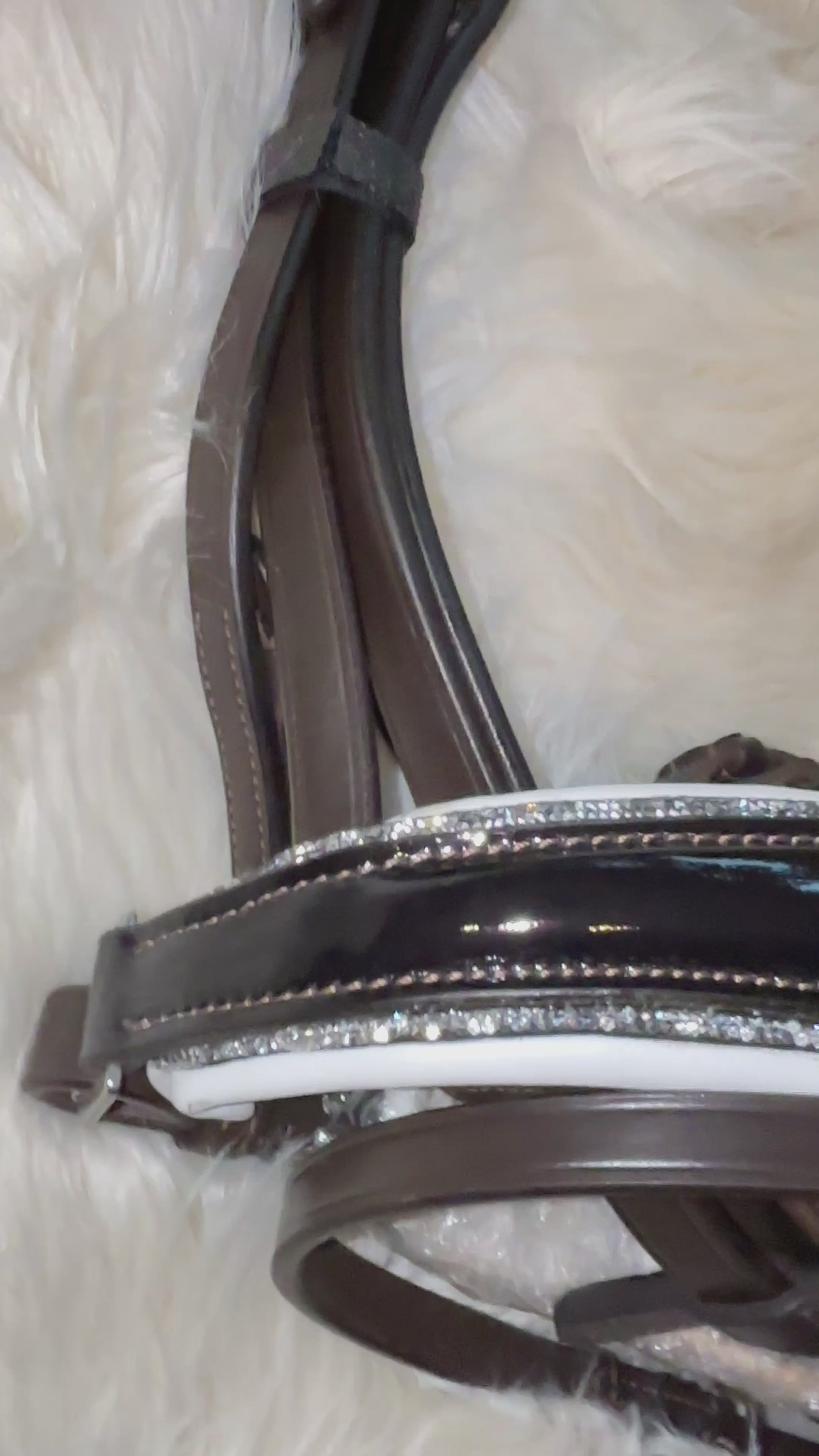 Bruin lakleren hoofdstel met zilveren kristallen steentjes - anatomisch en exclusief